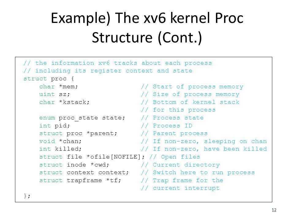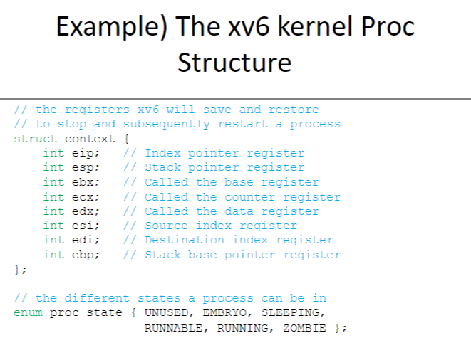 xv6 의 Proc 구조체(PCB)는 다음과 같다.