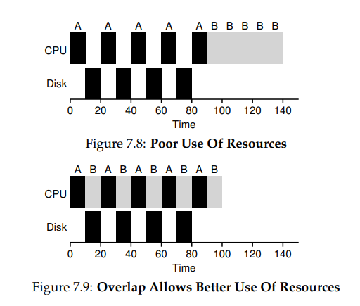 위와 같은 과정을 통해 중간에 I/O작업이 수행되더라도 CPU 사용을 최적화할 수 있다.