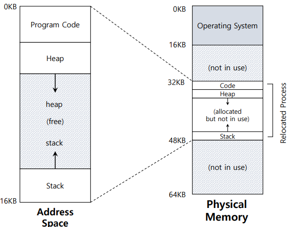 OS는 프로세스의 Address space를 physical 메모리의 특정 위치에 맵핑한다.