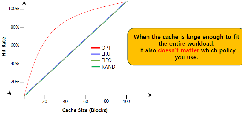 Locality가 전혀 존재하지 않고 완전히 랜덤한 페이지를 접근하는 워크로드의 경우에는 어떤 방식을 사용하든 차이가 없다.