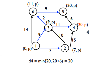 // d[v] : 시작 정점으로부터 노드v까지의 최단거리