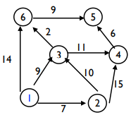 시작 노드인 1번 노드와 연결된 2, 3, 6번 노드의 거리를 업데이트해줍니다.