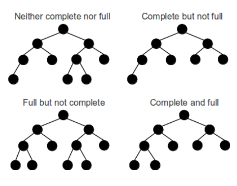 - Complete binary tree : 마지막 level을 제외한 모든 레벨에 노드들이 완전히 채워져있고, 마지막 레벨에서는 노드들이 왼쪽부터 채워져있는 binary tree