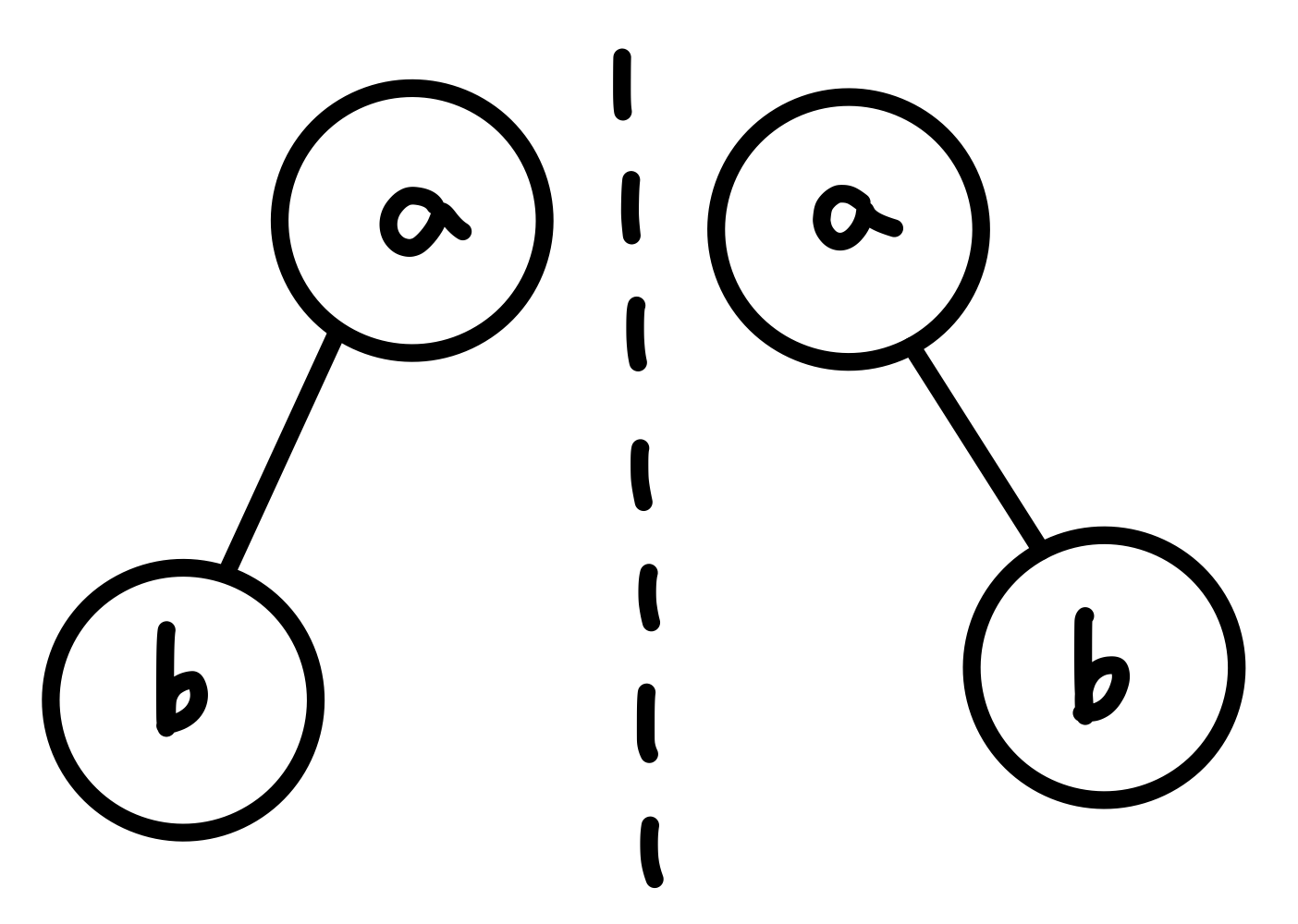 이진트리에서는 위와 같이 오른쪽에 자식이 달린 트리와 왼쪽에 자식이 달린 트리는 다른 트리로 구별됩니다.